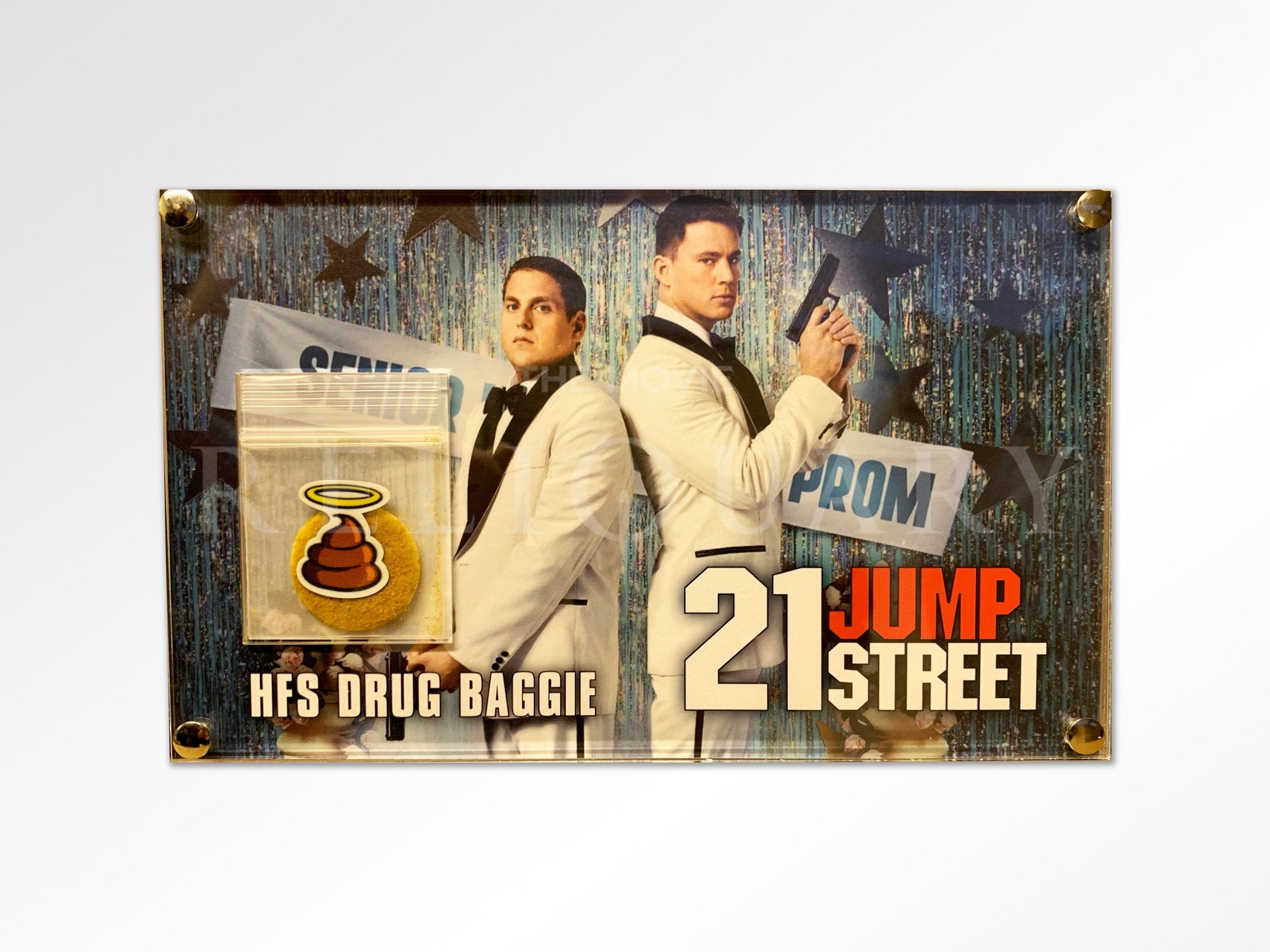 Custom acrylic display containing a genuine HFS drug baggie (NOT REAL DRUGS, made for the film) production used in the hit film ’21 Jump Street’