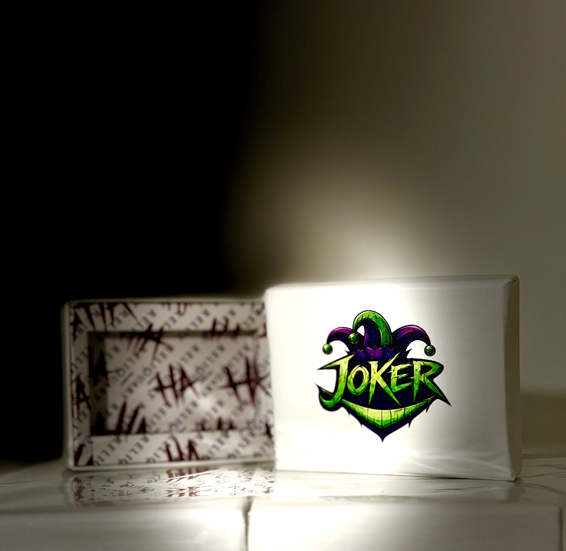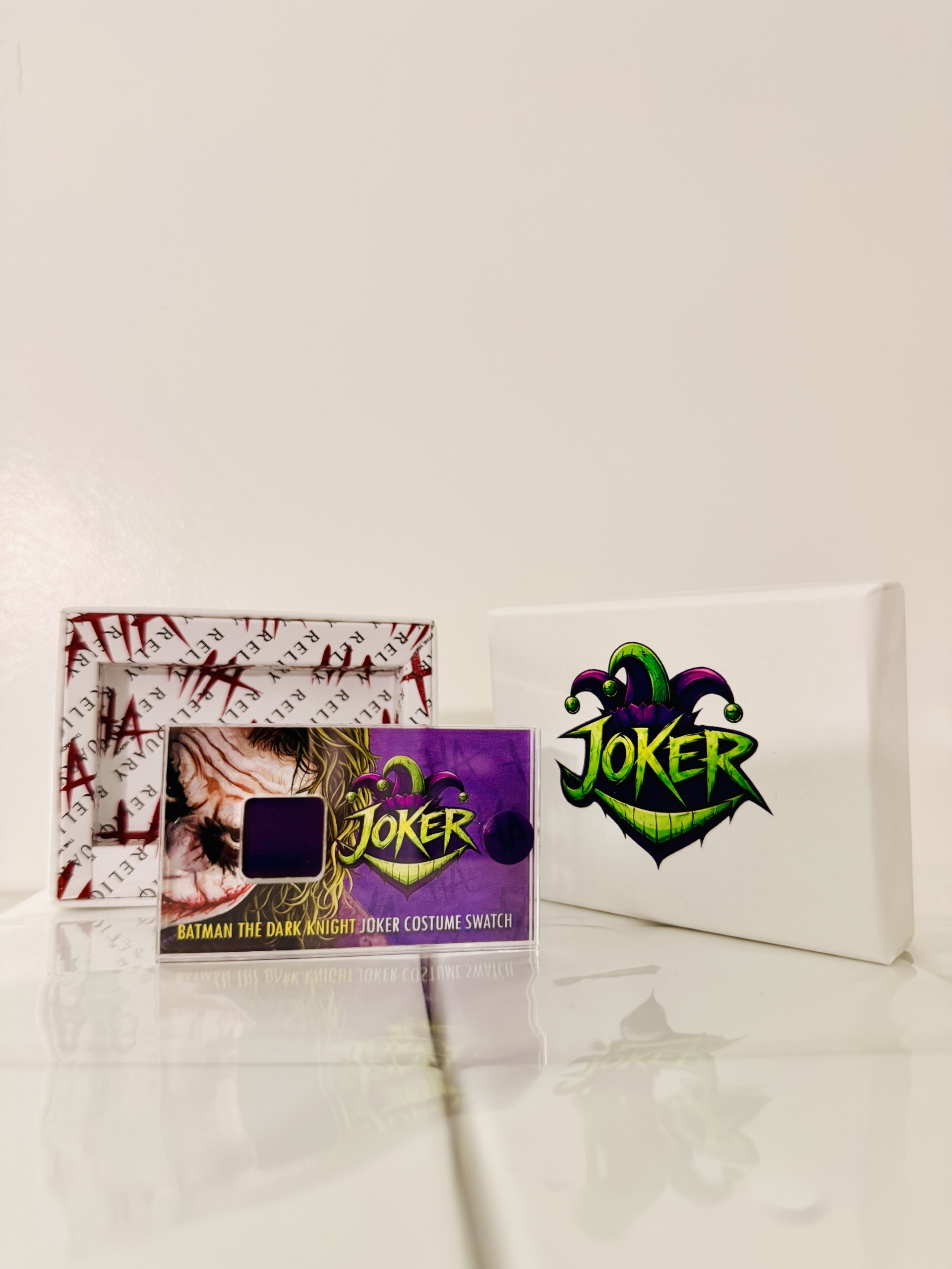 This beautiful mini-display contains a genuine section of Joker Costume Fabric from Batman The Dark Knight.